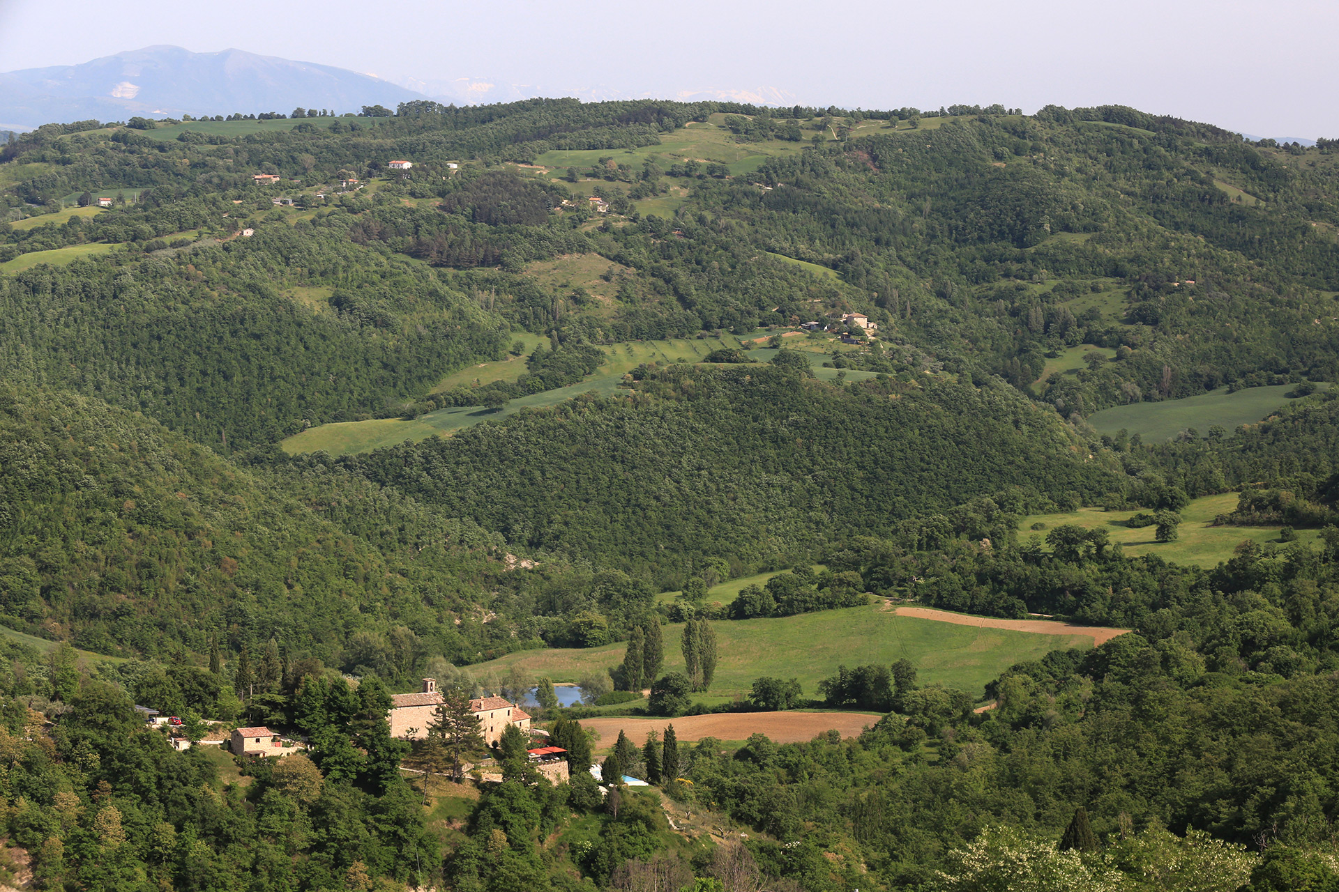 Gli edifici in pietra, armoniosamente integrati nella natura circostante, si ergono su uno sperone di roccia che si affaccia su una valle incantevole, dominata da ulivi secolari e boschi lussureggianti. La splendida piscina a sfioro, alimentata da acqua salata, offre un'oasi di ristoro mentre il panorama invita a godersi la pace e le meraviglie dell'Umbria.